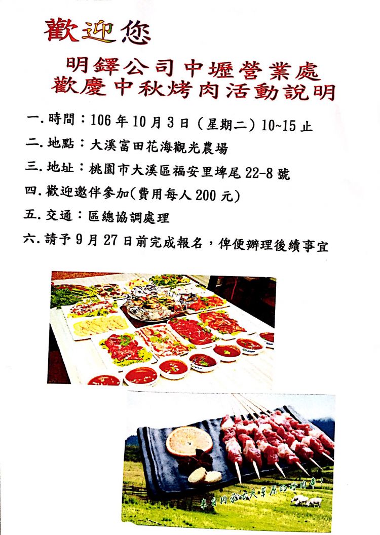 歡迎參加中秋烤肉